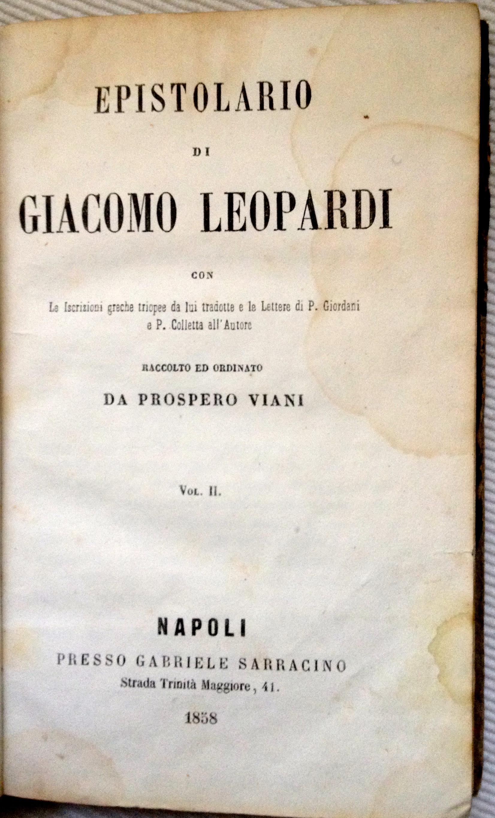 Epistolario di Giacomo Leopardi a cura di Prospero Viani