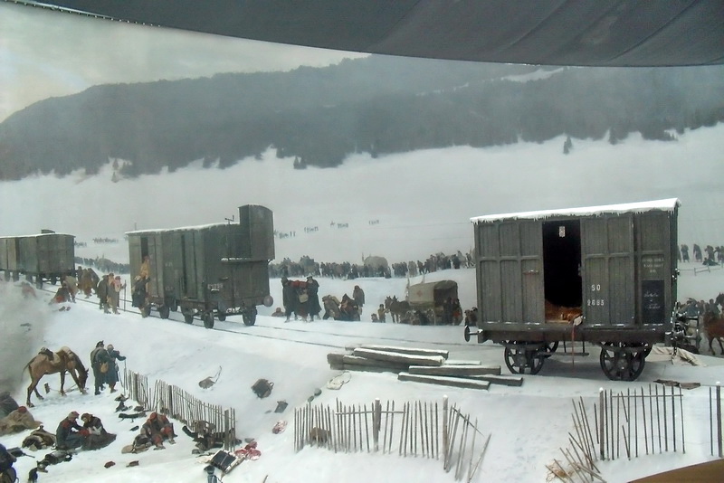 Esempi straordinari di faux terrain ancora oggi conservati sono quelli del Bourbaki Panorama a Lucerna e del Mesdag panorama a L’Aia. Il Bourbaki fu dipinto da Edouard Castres nel 1881 con la rappresentazione di un evento memorabile della Guerra Franco-Prussiana (1870-71), quando le truppe svizzere sotto il comando del generale Herzog, salvarono le vite di molti soldati francesi. E’ importante perché fu la prima volta che intervenne la Croce Rossa, fondata da Heri Dunant nel 1863-64. Sul terreno oltre a un vecchio vagone ferroviario, ci sono altri oggetti (fucili, slitte, zaini, ecc.) insieme a figure, 21 delle quali sono state inserite dopo il restauro iniziato nel 1996 e terminato nel 2008.